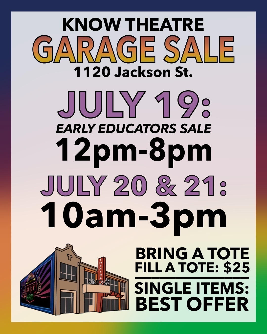 Know Theatre Garage Sale Event Dates