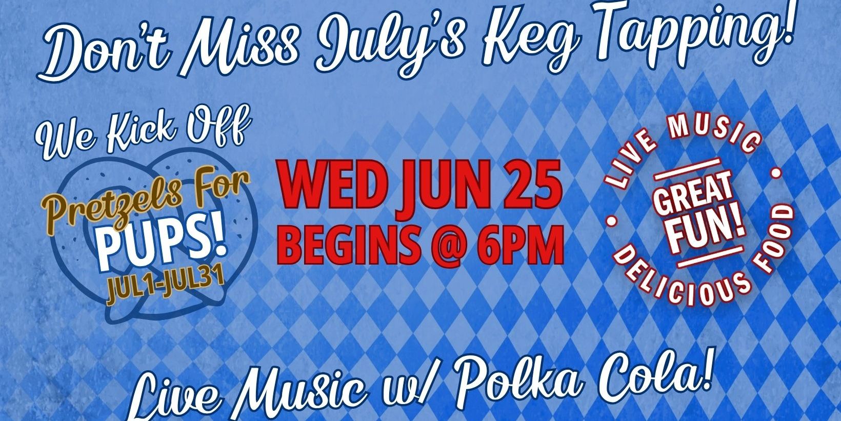 Join July's Keg Tapping Celebration! Event Dates